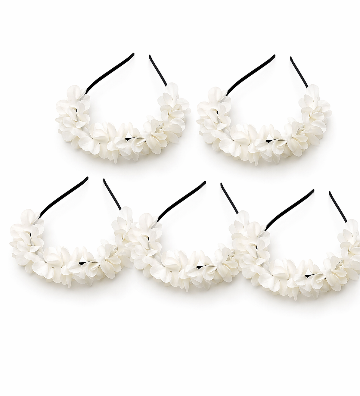 Yumuşak dokulu beyaz çiçek detaylarıyla tasarlanan bu taçlar, minimal ve romantik bir stil sunar. Siyah taç tabanı sayesinde saçta kolayca sabitlenir ve gün boyu rahat kullanım sağlar.