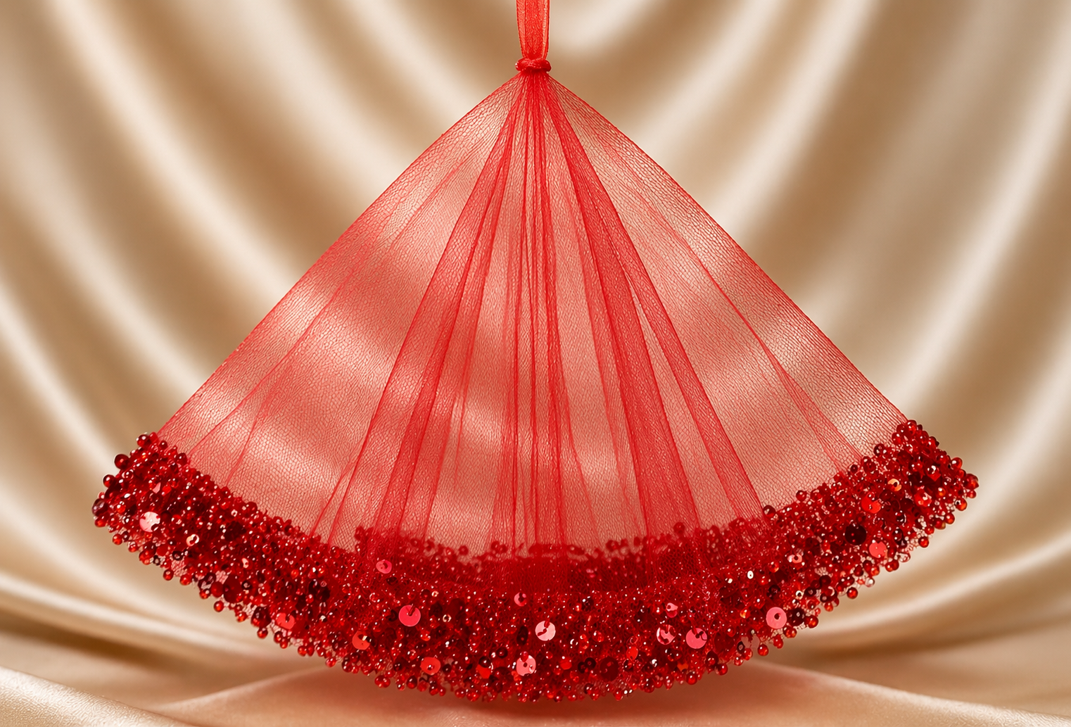 Canlı Kırmızı Tül Payet İşlemeli Kına Örtüsü – Scarlet Shine Serisi