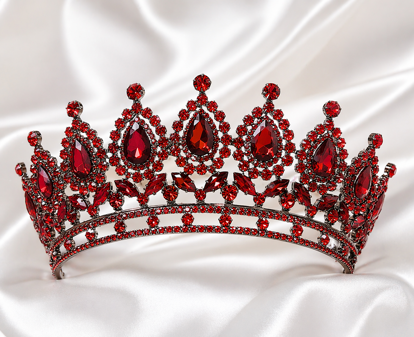 Dayanıklı metal yapısı ve parlak taş dizilimi sayesinde uzun süreli kullanım sunarken, şık tasarımıyla her saç modeline uyum sağlar. Klasik ve modern tarzı bir araya getiren bu taç, özellikle kırmızı konseptli organizasyonlar için ideal bir seçimdir.