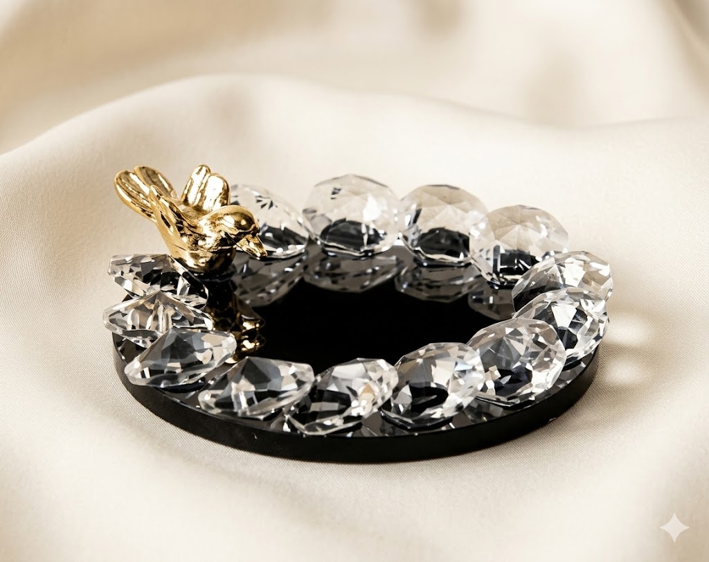 Zarif ve göz alıcı tasarımıyla öne çıkan kuğulu yüzük yükseltici, özel günlerinizde yüzük sunumunu şıklıkla tamamlar. Aynalı tabanı ve etrafını saran parlak kristal taş detayları sayesinde ışığı yansıtarak yüzüklerinizi ön plana çıkarır. Üzerindeki gold kuş figürü ise ürüne romantik ve estetik bir dokunuş katar.