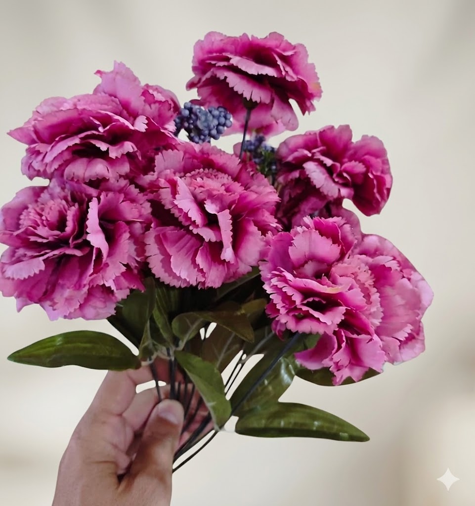 Mor Pembe Yapay Karanfil Demeti – Dekoratif Çift Renkli Karanfil Buketi, Şık Tasarım